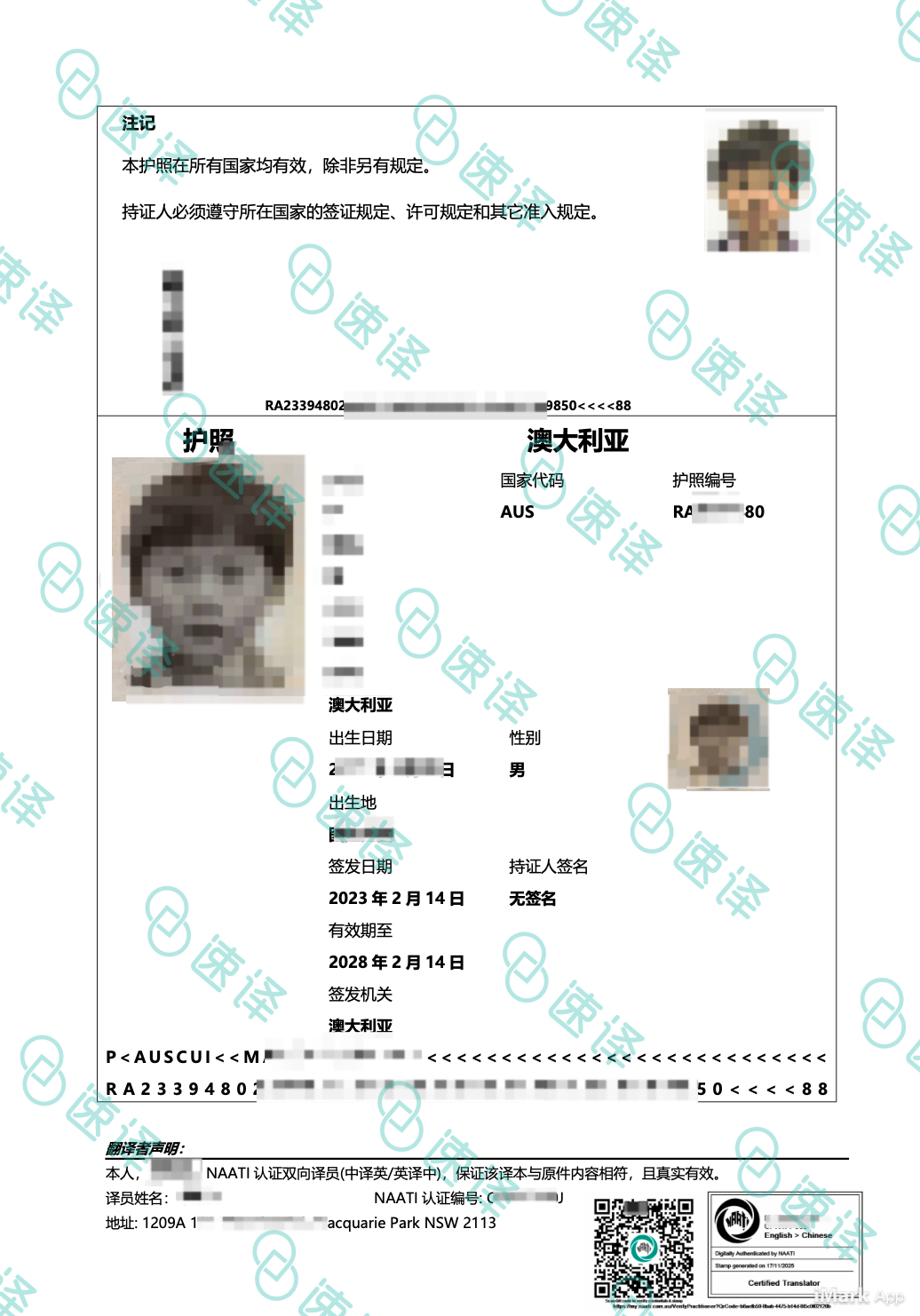 🛂 NAATI 英译中|澳洲护照认证翻译