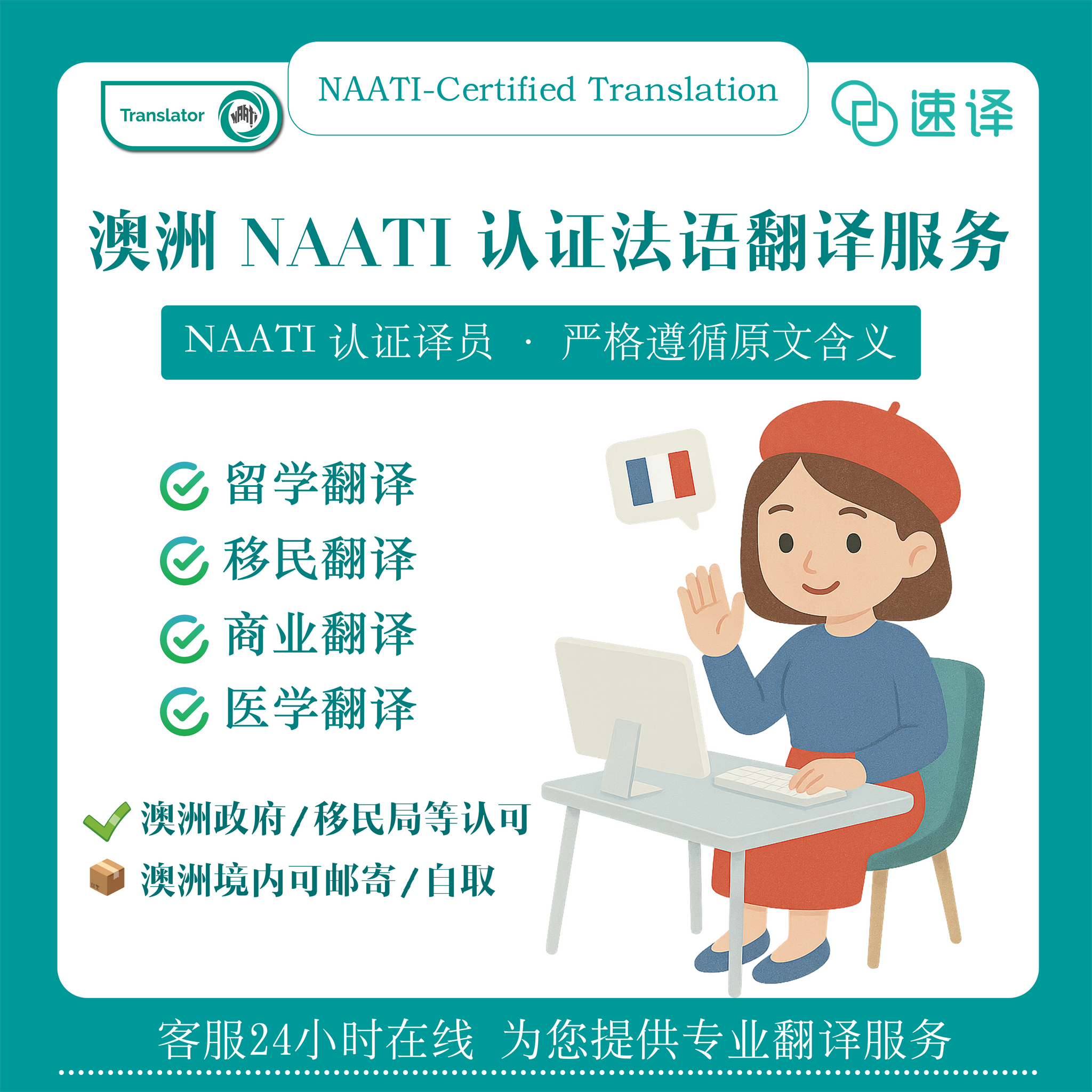 速译(Suyi Translation) 提供专业的 NAATI 认证法语翻译服务, 翻译文件被澳洲移民局及各类政府机构接受。