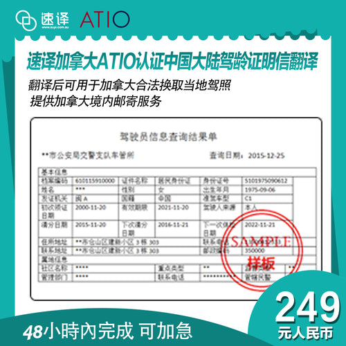 加拿大安省ATIO认证驾照+驾临认证翻译 + 邮寄