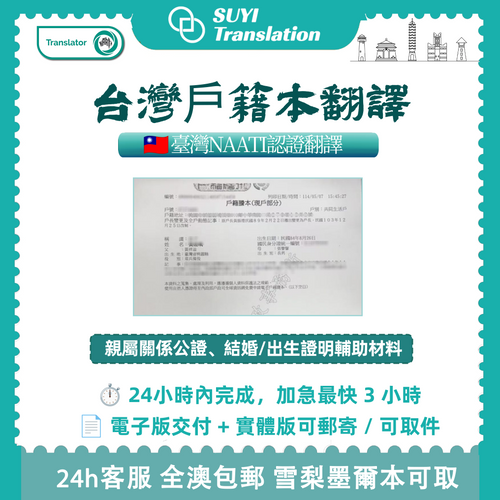 點擊查看速譯營業執照 | 點擊查看速譯翻譯師NAATI認證證書 | 澳洲線下取件 | 全澳境內郵寄。