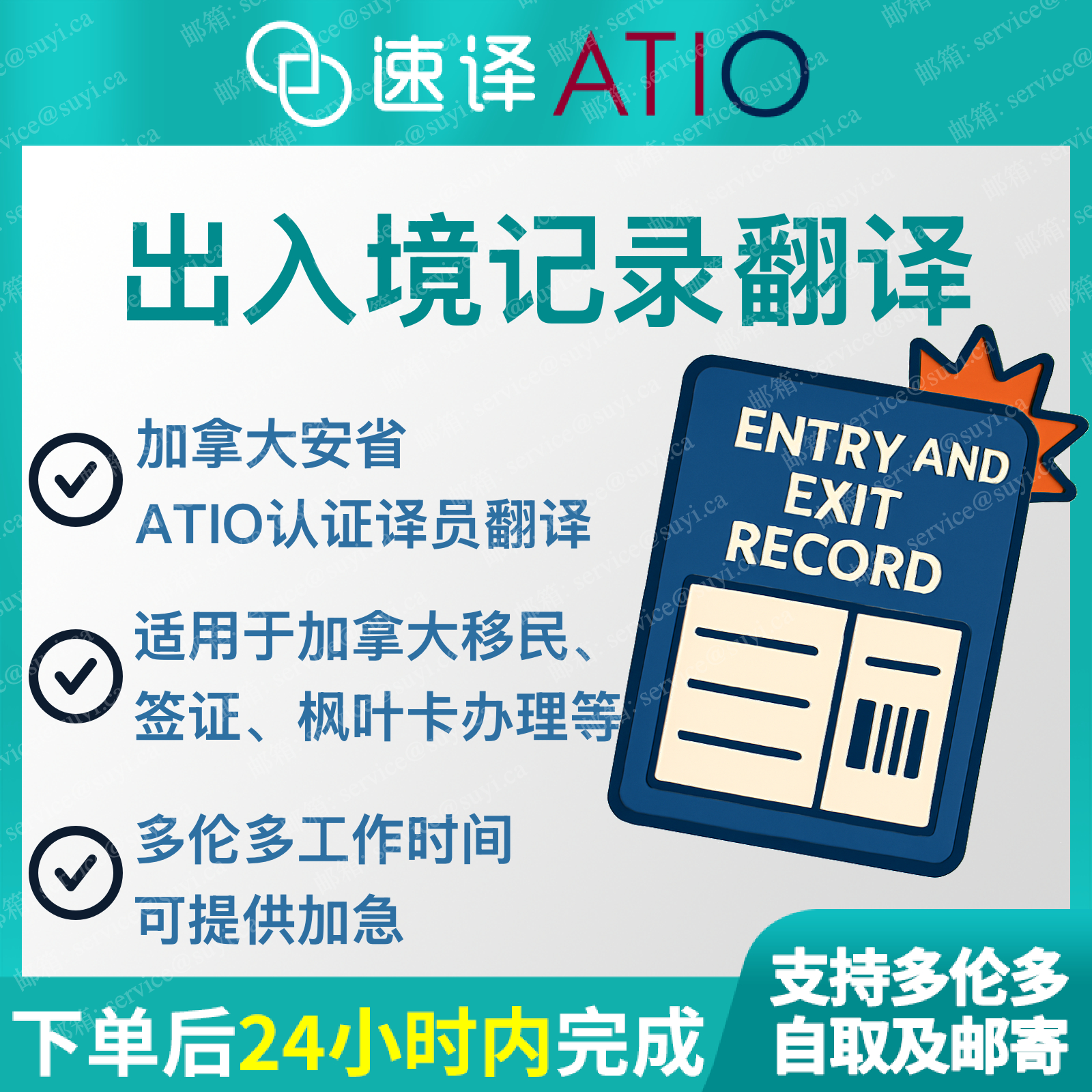 为方便您的申请递交,我们将在收到您发送文件电子版邮件后的48小时内将翻译好的扫描版发送到您的电子邮箱,纸质版将随后通过平信邮寄方式寄到您提供的地址(仅限加拿大客户),送件时间取决于加拿大邮政(Post Canada)的效率,无跟踪单号,请勿反复询问投递或到达时间。加拿大境外客户仅提供电子版(可用于网络或纸质申请),如需原件,需要客户额外负担邮寄费用。