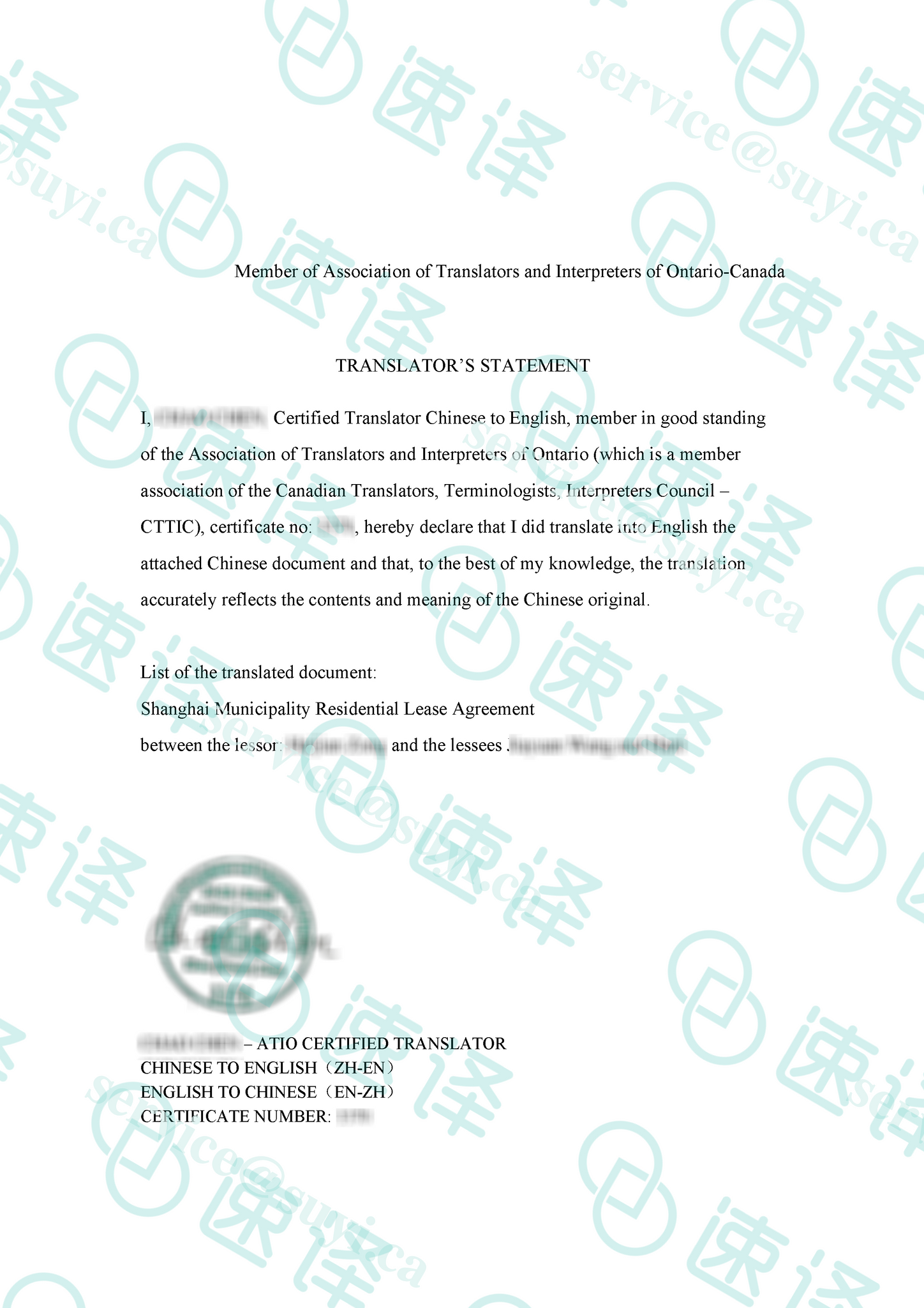 由加拿大认证翻译员翻译,签字并加盖公章,加拿大移民部IRCC(CIC)、各省移民局、加拿大各银行、法庭、税务局认可。可替代中国公证处所做的双语公证书,具备同等效力。