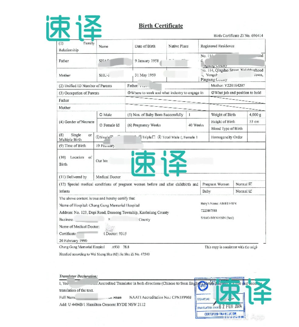所提供的每份文件均有NAATI中英雙向認證翻譯的蓋章字樣,以確保您的文件被澳大利亞移民局、稅務局、學校及其政府收納。