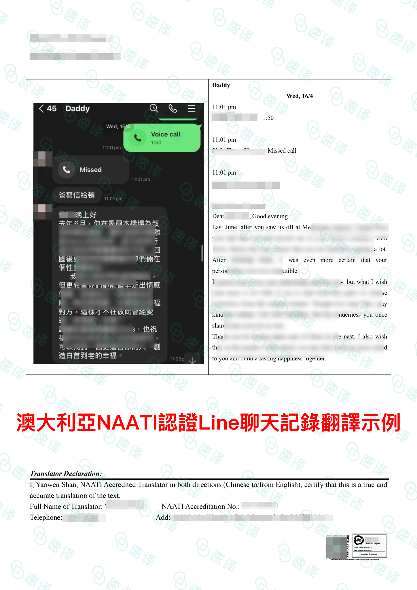 速譯為您提供NAATI認証譯員翻譯聊天紀錄,可以用於澳洲法院、警察局。