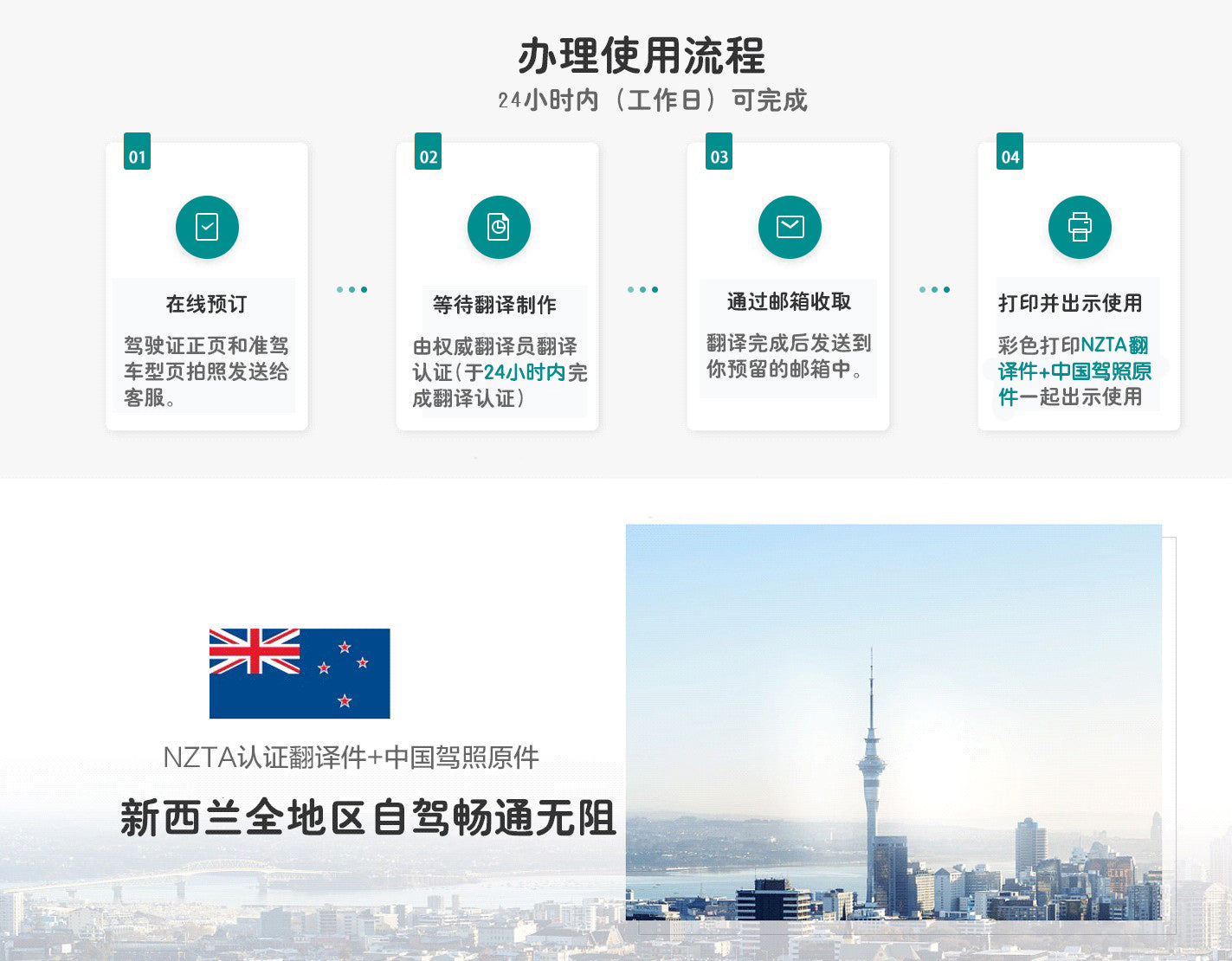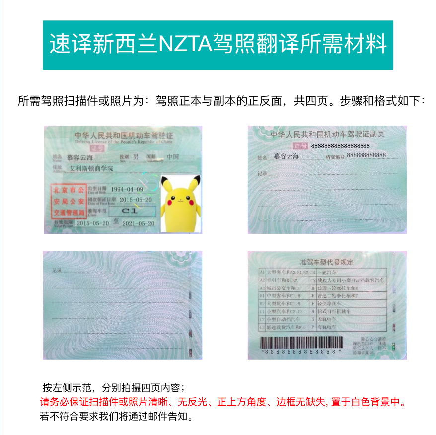 需注意,只有新西兰交通局(NZTA)认可的翻译机构,才能出具有效的英文译本。